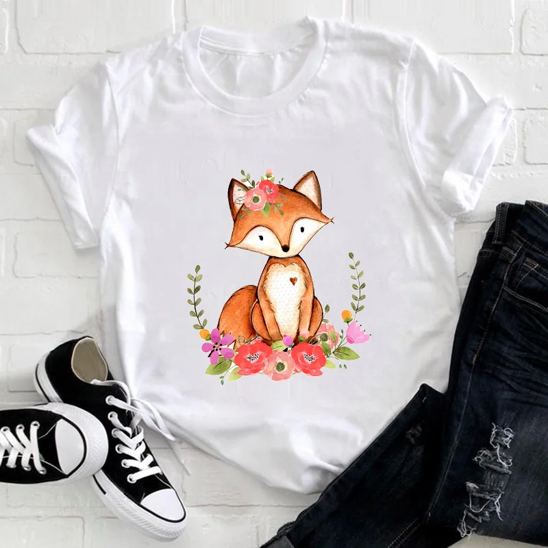Женская футболка с рисунком милой лисы, одежда с мультяшным принтом...
