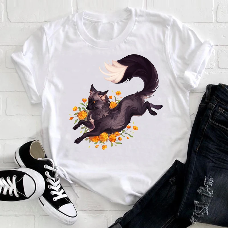 Футболка s для женщин, футболка с рисунком каваи лисы, модный топ, ...