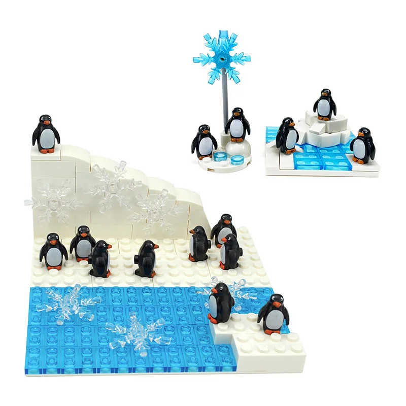 Конструктор детский Ледяной Снежный мир, Пингвины, ледник, снежинка