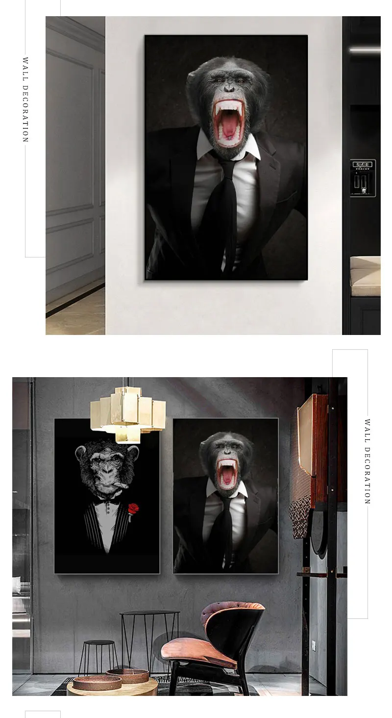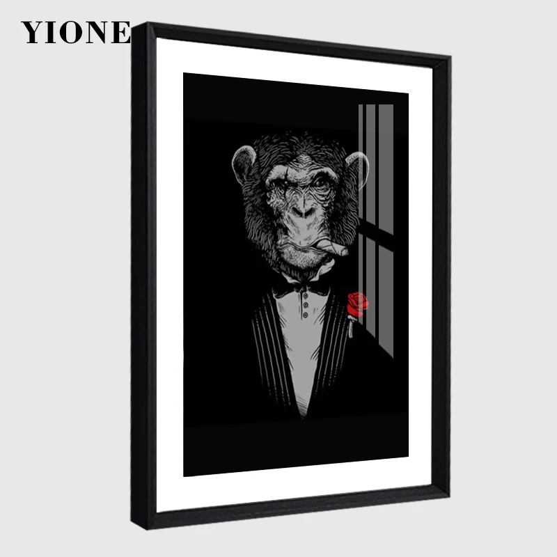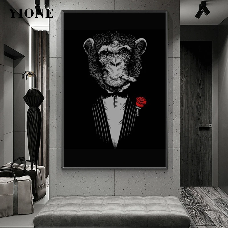 Настенный художественный плакат с изображением курительного человека гангстерской шимпанзе, современная абстрактная черно-белая картина с изображением животных, декоративная картина