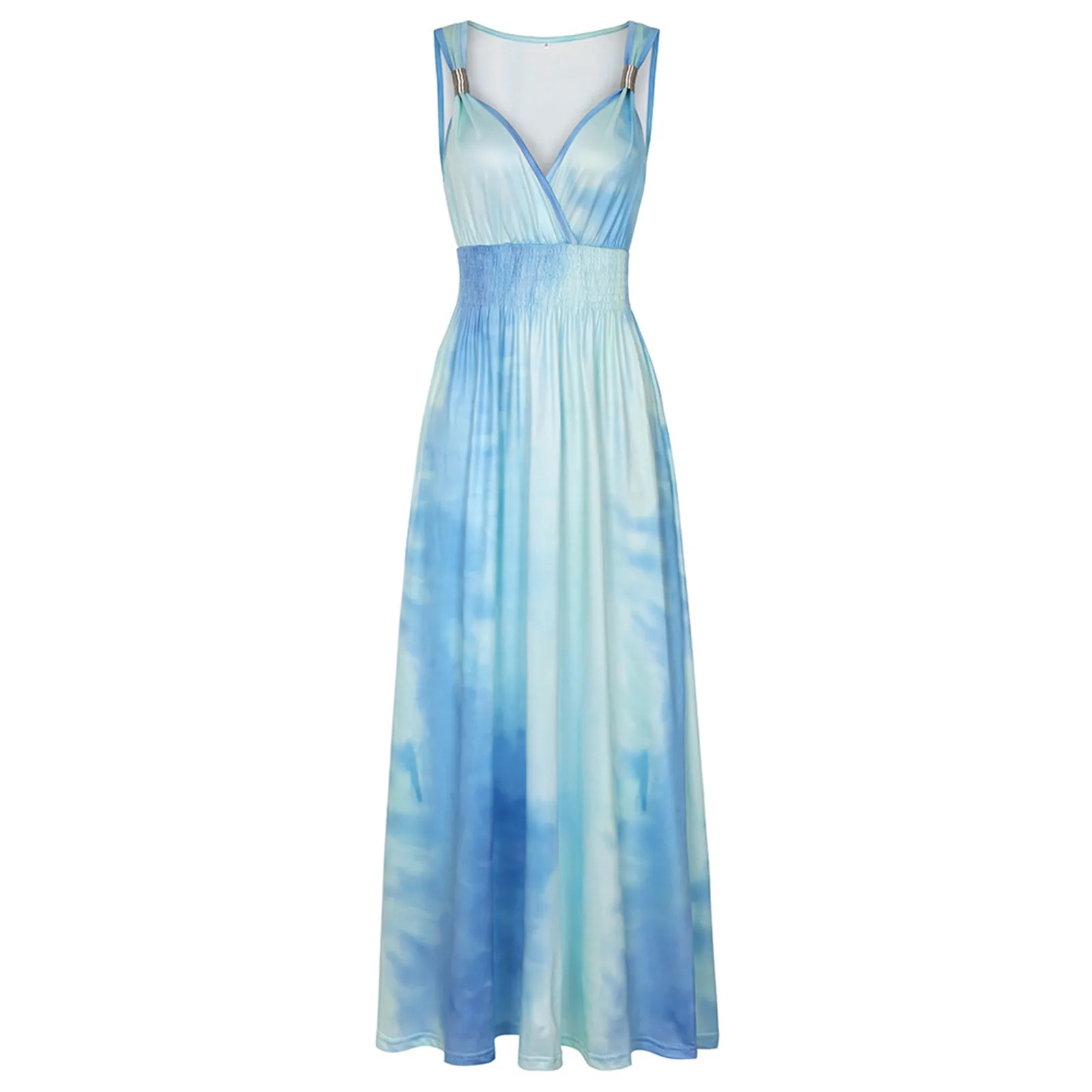 Платье женское летнее, длинное, на бретельках, с V-образным вырезом, летнее, 2021