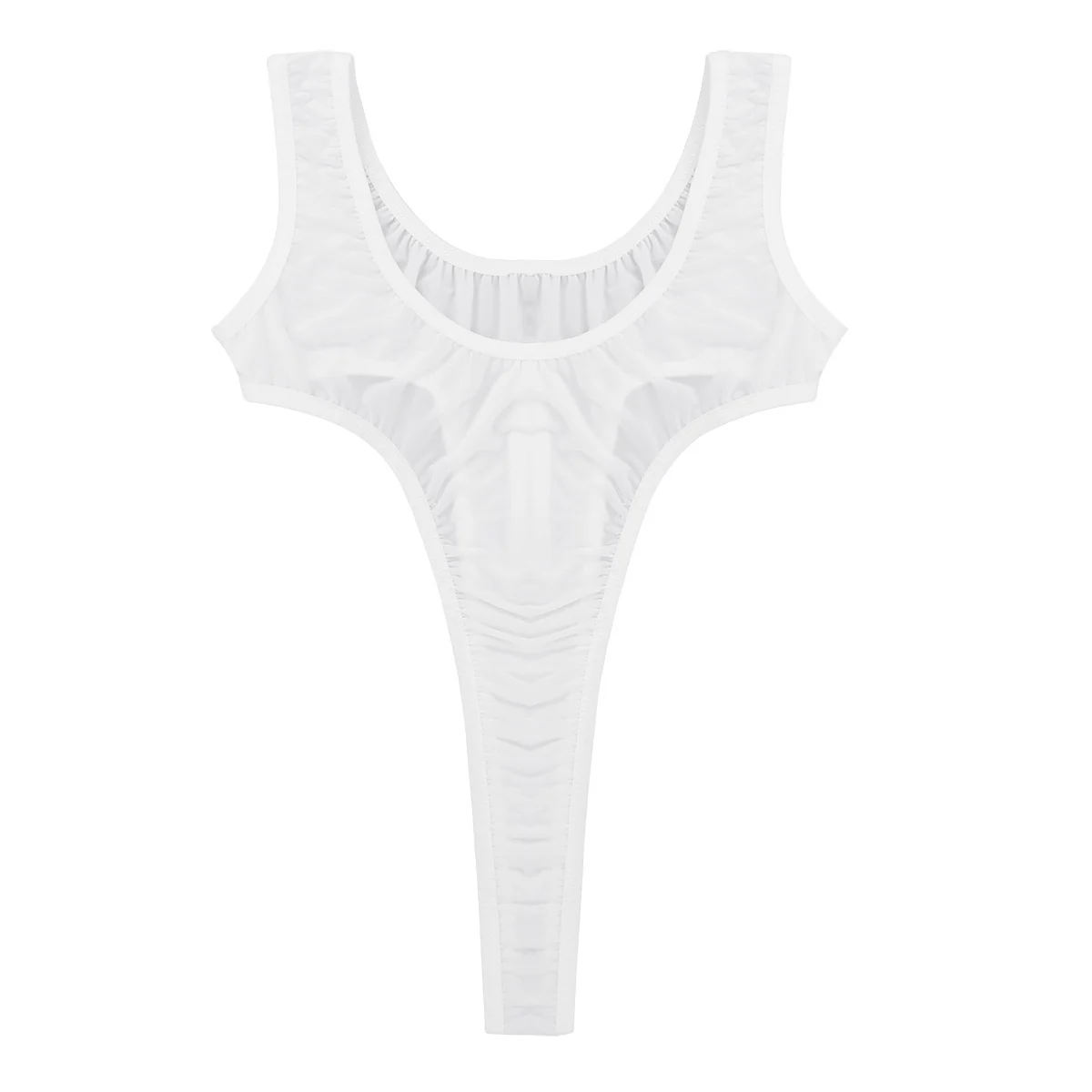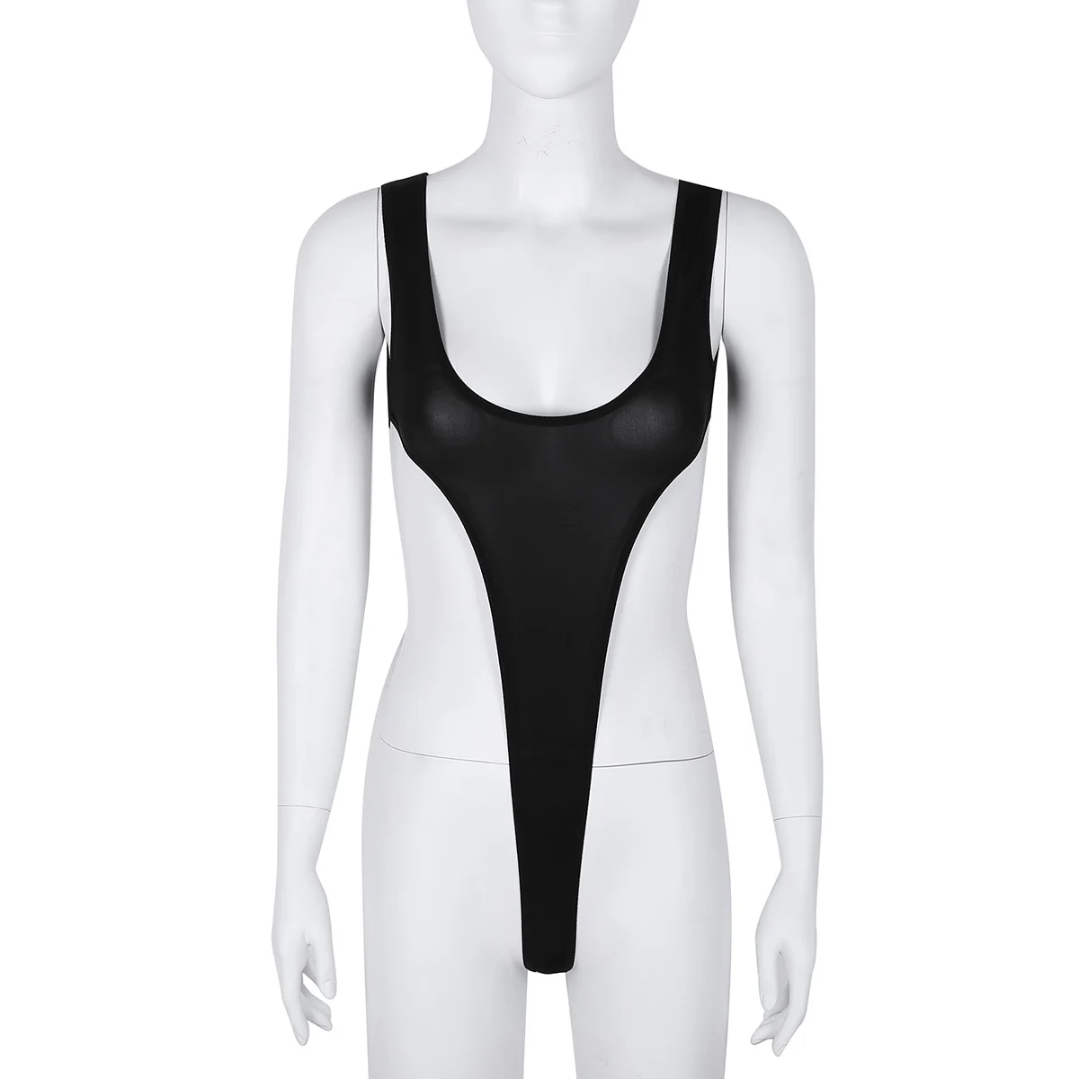 Женское облегающее Боди без рукавов, Клубная одежда с высоким вырезом, прозрачное трико, комбинезон, эластичное нижнее белье, ночное белье
