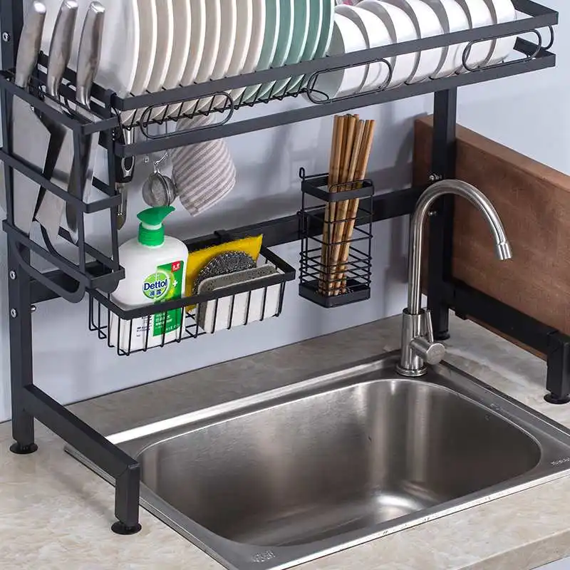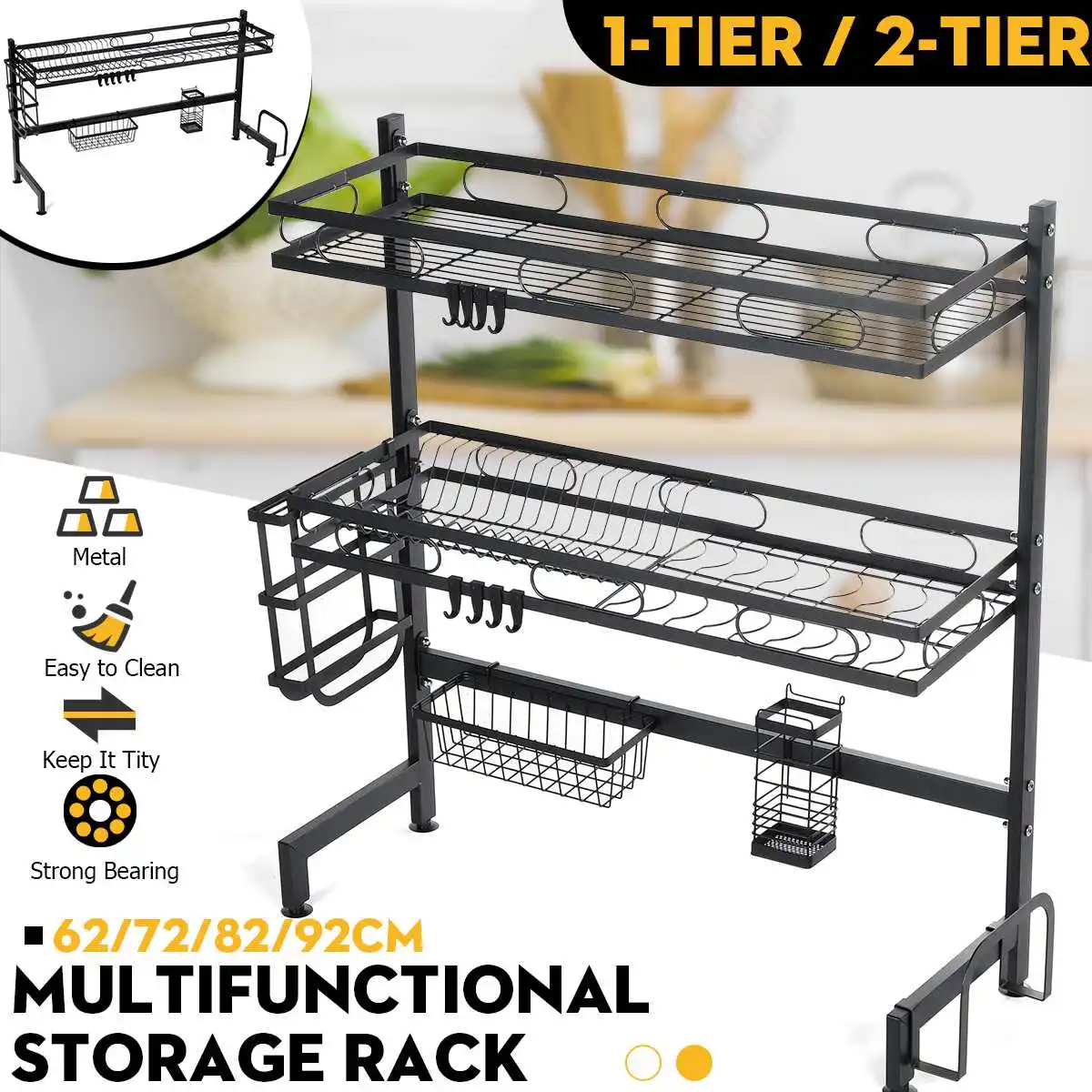 Многофункциональная полка для раковины, 62-92 см, 2 уровня, сушилка для посуды, держатель для хранения