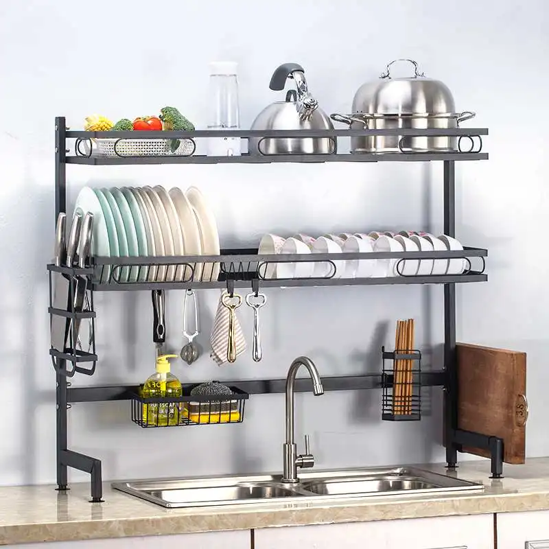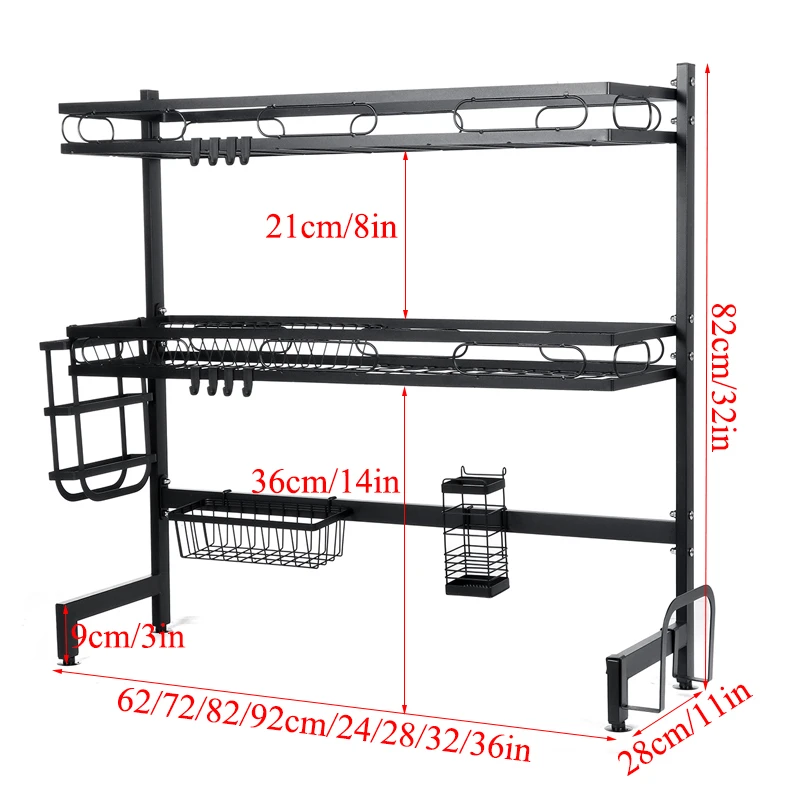 2 уровня, многофункциональная полка для сушки посуды, 62-92 см