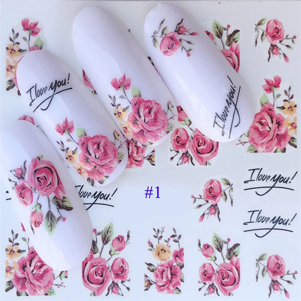 Водная наклейка для ногтей цветок Фламинго красота слайдер цветение Красочные растения узор 3D маникюрная наклейка Сделай Сам дизайн ногтей украшения