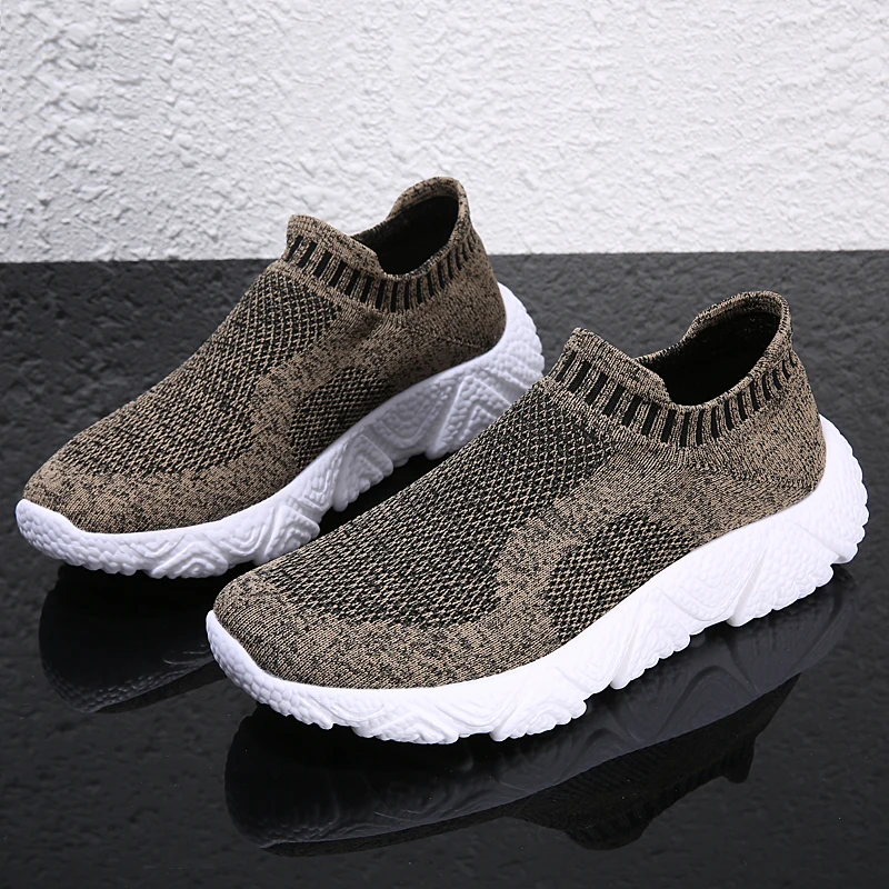 Кроссовки Tendy мужские сетчатые, Повседневная вязаная обувь, без шнуровки, дышащие спортивные