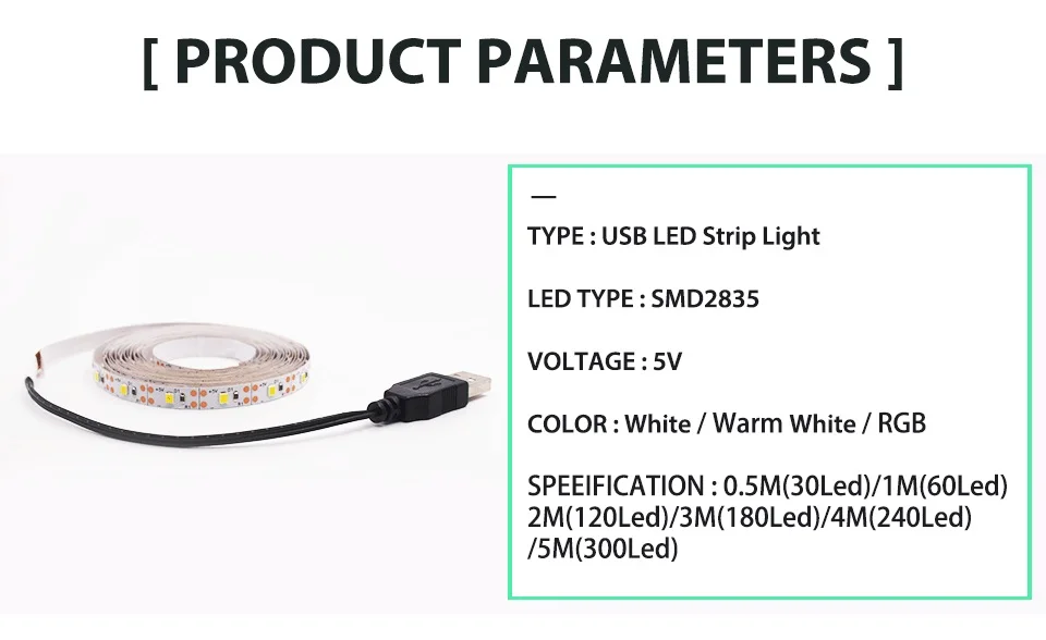 Светодиодная лента 5 м, 4 м, 3 м, 2 м, 1 м, USB, 5 в постоянного то...