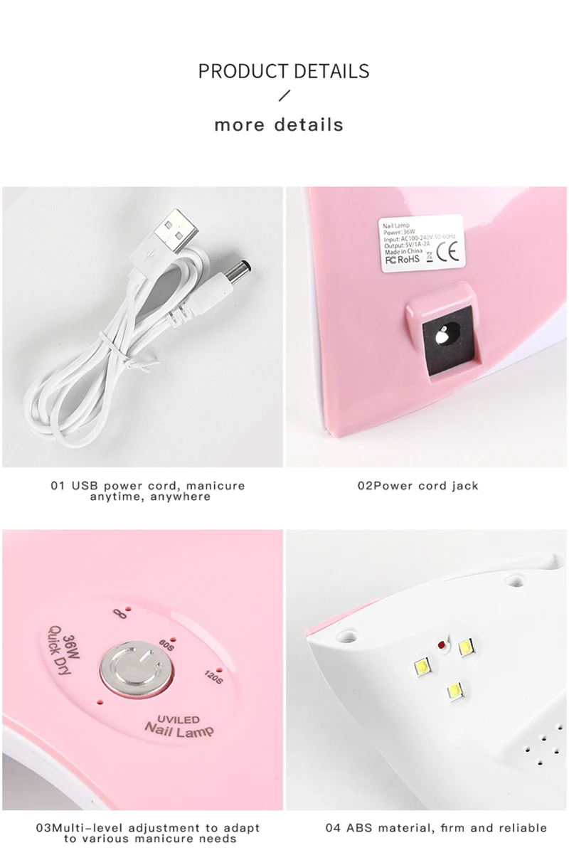 Может использоваться для сушки основного лака для ногтей, лака для ногтей, клея для фототерапии и т. д.