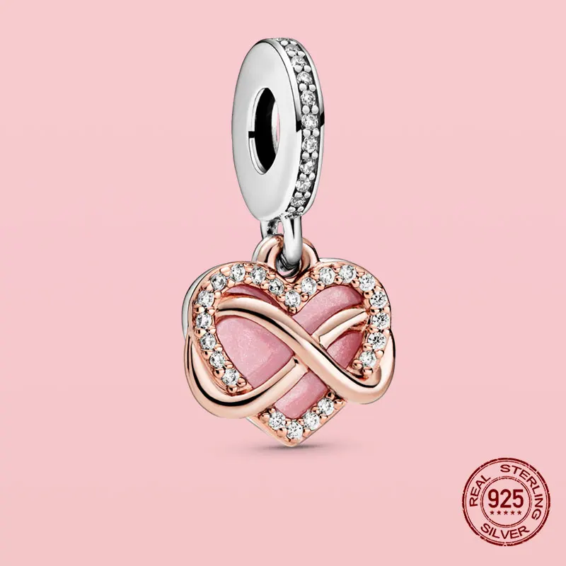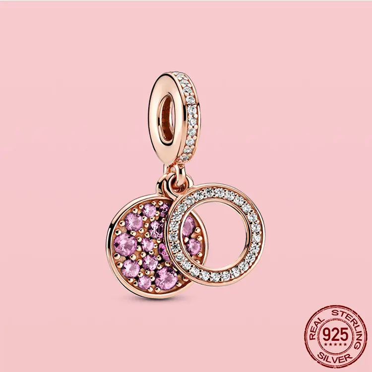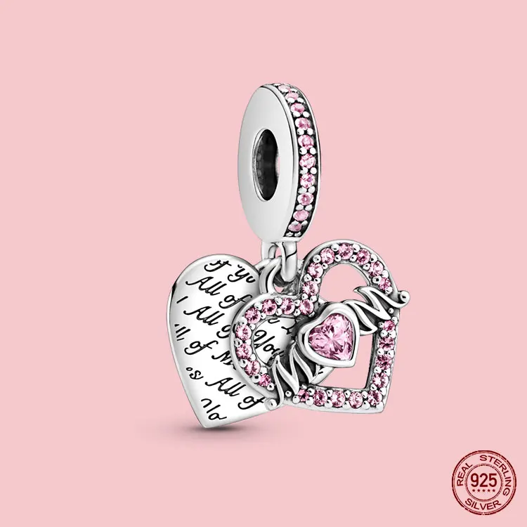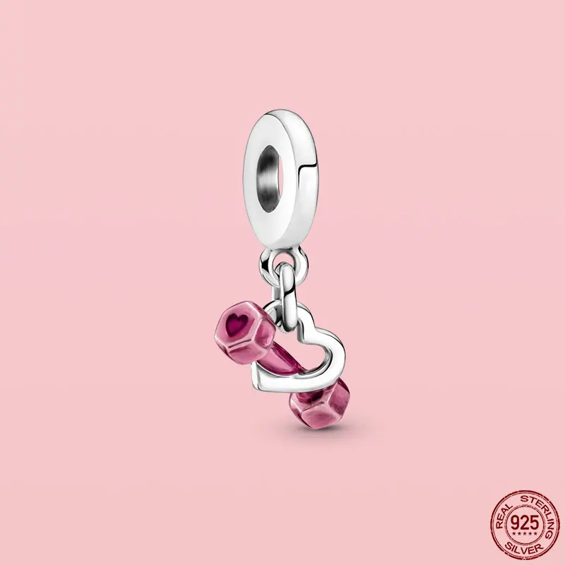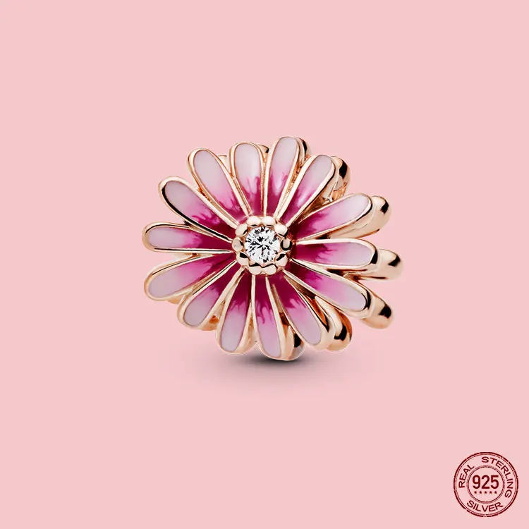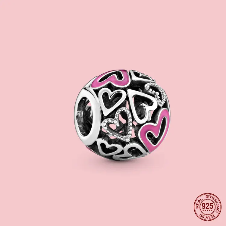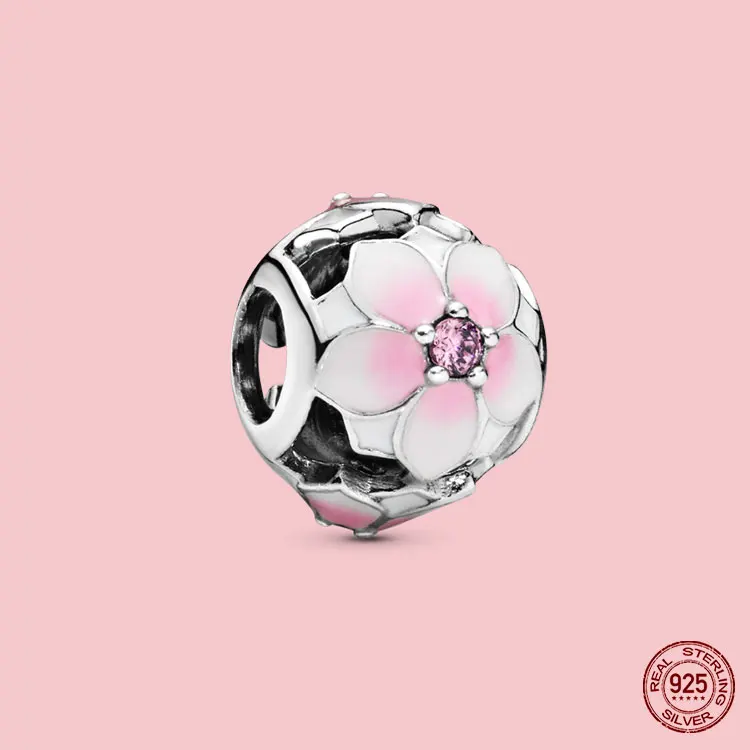 100% S925 подвески, розовые подвески, магнолия, цветок, сердце, искусственные бусины, подходят для оригинального браслета Pandora, ожерелье, ювелирные изделия