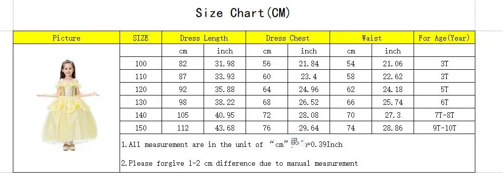 Платье принцессы для девочек, на день рождения, Хэллоуин, Красавица и Чудовище
