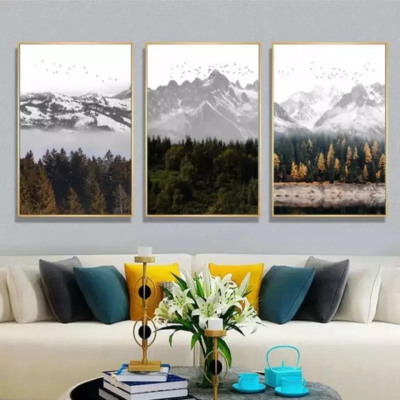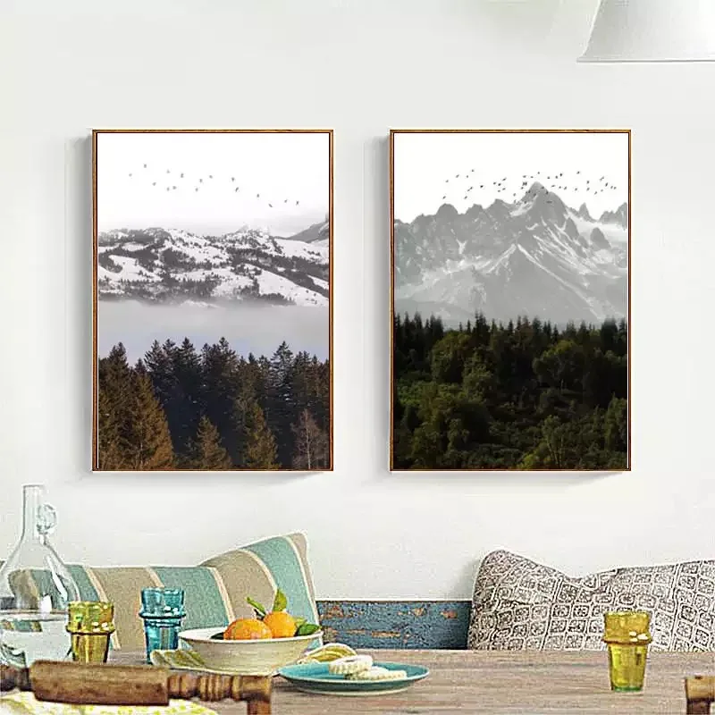 Лес Холст плакат Горный пейзаж настенные художественные принты скан...