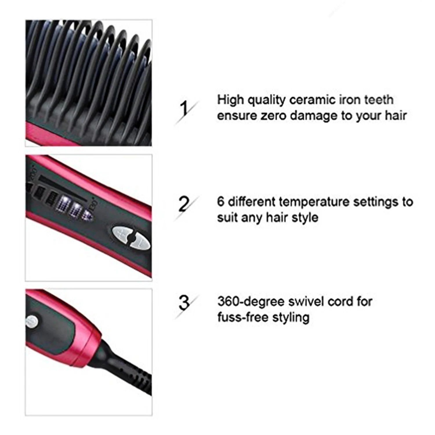 · Мощность: 25 Вт-39 ВтЛучшее время костюма: 3-5 минут· Применимые волосы: сухие волосыКонтроль температуры: 6 сегментовВнешний вид: пластик• Максимальная температура: 200 ℃Самая низкая температура: 130 ℃· Тип: многофункциональный· Обслуживание: один год гарантии· Производство тепла: PTC· Напряжение: 110в-220Длина шнура питания: около 2 метров, вращение на 360 градусов.Щетка для выпрямления волос дает быстрый профессиональный результат шелковистых прямых волос в считанные минуты, о которых вы мечтали, позволяет быстро готовиться к выходу в утренние часы, вместо борьбы с сушильщиками день за днем.Эта щетка для выпрямления волос делает ваши волосы шелковистыми, прямыми и гладкими с самого первого удара. Нагревается до 293 ℃ (145 ℃) за 30 секунд, макс. 392 ℉ (200 ℃), автоматическая постоянная температура при 293 ℃ (145 ℃), ваши волосы будут в основном решены в течение 8-10 секунд.Руководство по настройке температуры:Индивидуальный набор 266 ℃ (130 ℃) в первый раз, или мягкие тонкие волосы;Индивидуальный набор 293 ℃ (145 ℃) для обычных небольших вьющихся волос;Индивидуальные set320 ℉ (160 ℃)/ 338 ℃ (170 ℃) для блонд, окрашивания или окрашивания волос;Индивидуальные set374 ℉ (190 ℃)/ 356 ℃ (392 ℃) для очень толстых, кудрявых и жестких выпрямлений