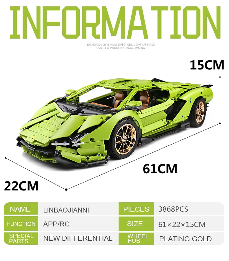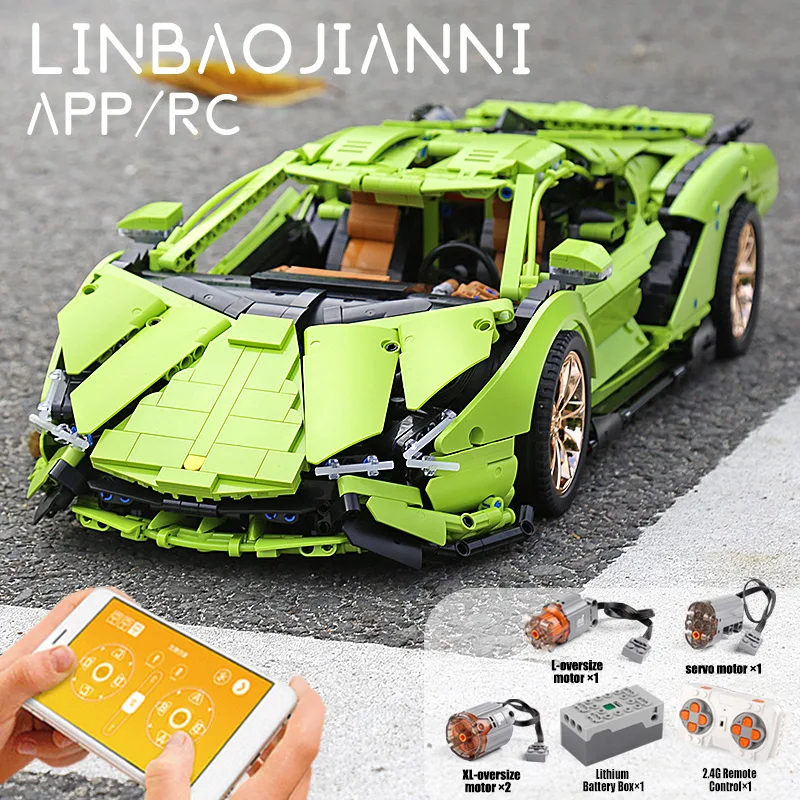 Высокотехнологичная машина Mould King MOC с приложением на радиоуправлении, игрушки Lamborghinis Sian FKP 37, родстер, строительные блоки для детей, подарки на день рождения