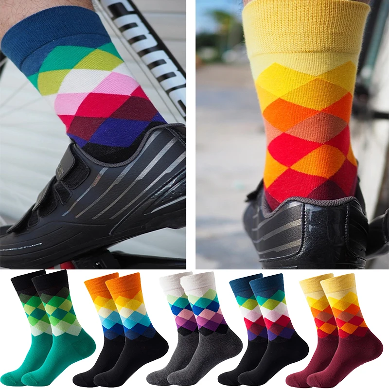 Носки мужские, хлопковые, разноцветные, в клетку, в стиле Харадзюку