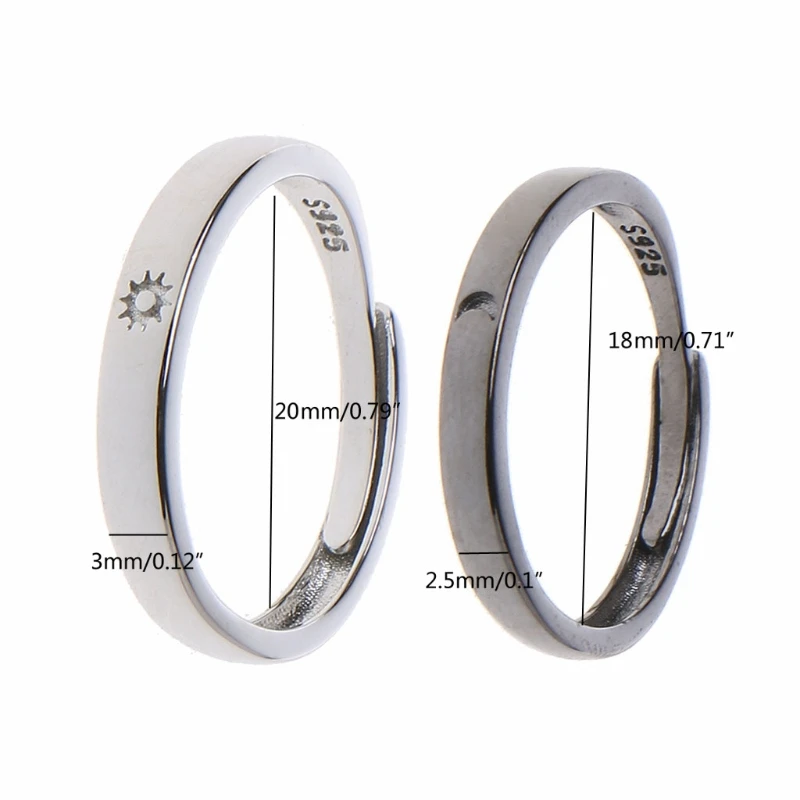 652B комплект из 2 предметов с регулируемыми кольцами для влюбленных и влюбленных с изображением Солнца и Луны, минималистичные обручальные кольца, набор для влюбленных
