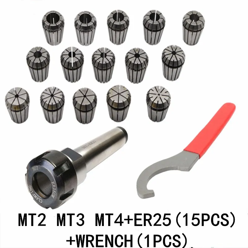 Пружинные зажимы ER25 15 шт. MT2 MT3 MT4 ER25 1 шт. ER25 гаечный ключ 1 шт. цанговый патрон Держатель Морзе конус для токарного станка с ЧПУ