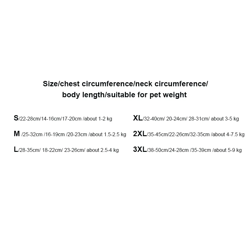 Размер/окружность груди/окружность шеи/длина тела/подходит для веса питомца
