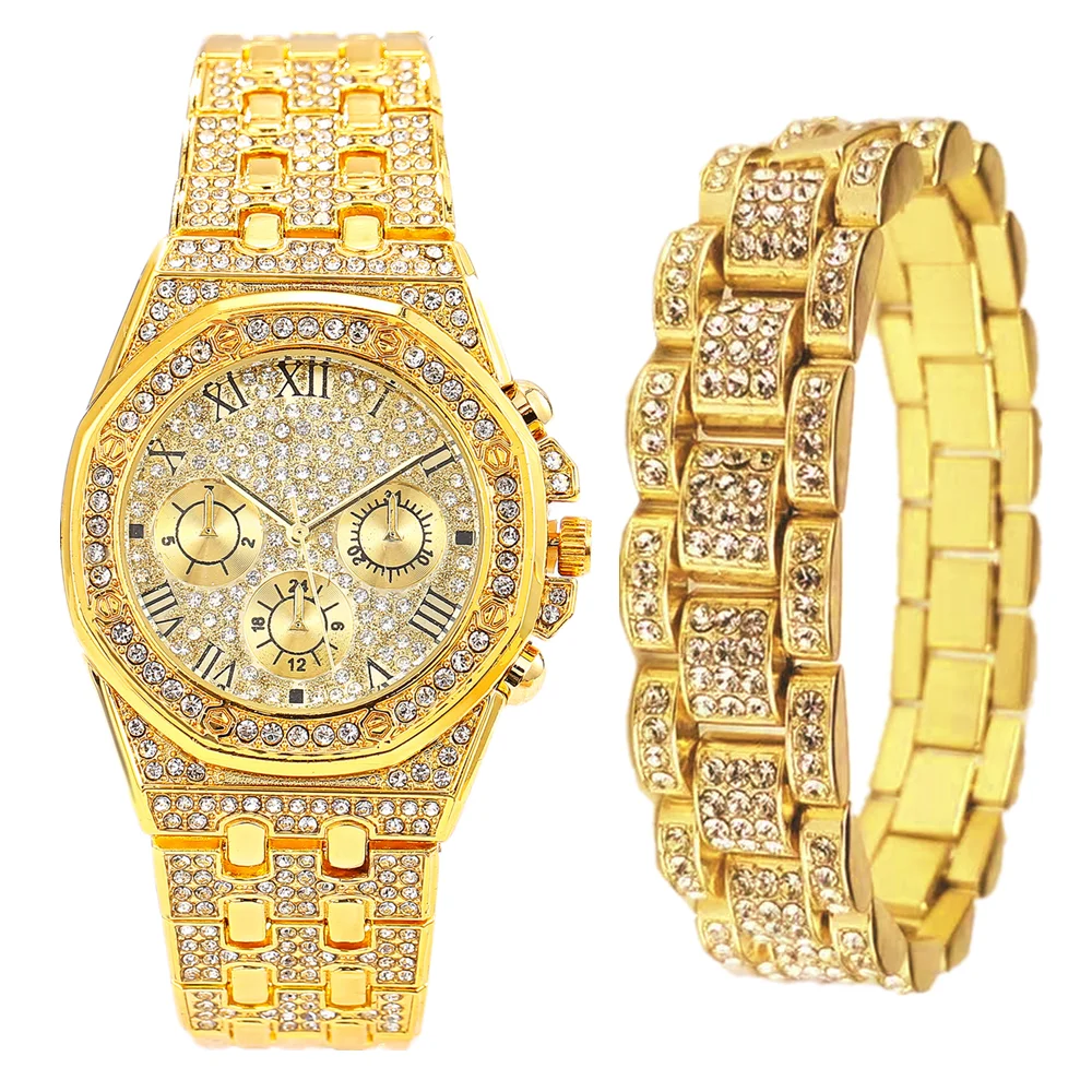 2 шт.компл. золотые часы, браслет для мужчин, мужской браслет-цепоч...
