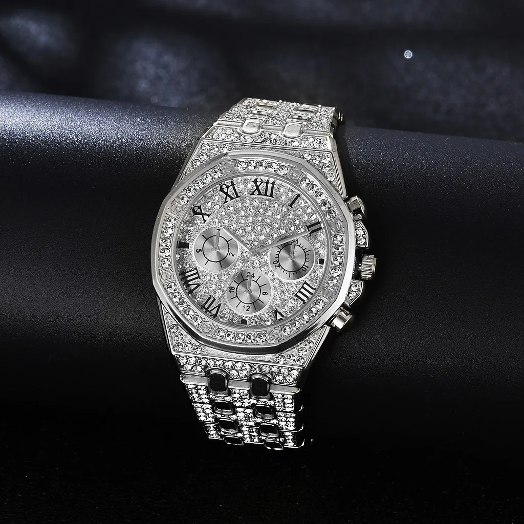 Мужские часы с браслетом из кубинской цепи, мужские часы со сверкаю...