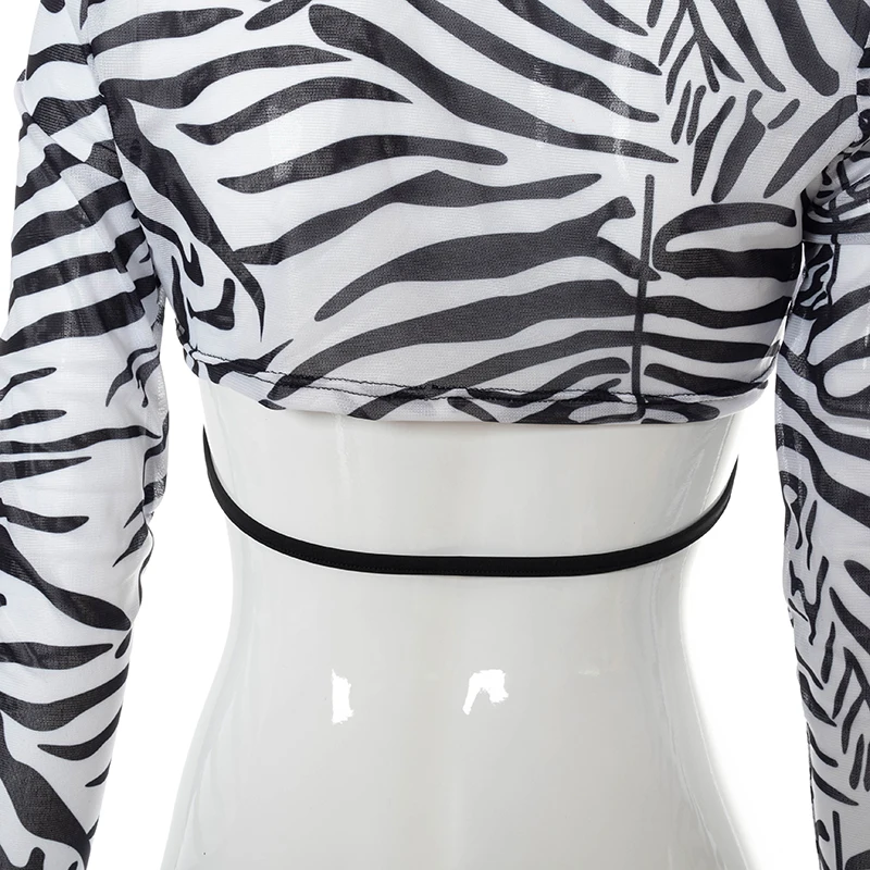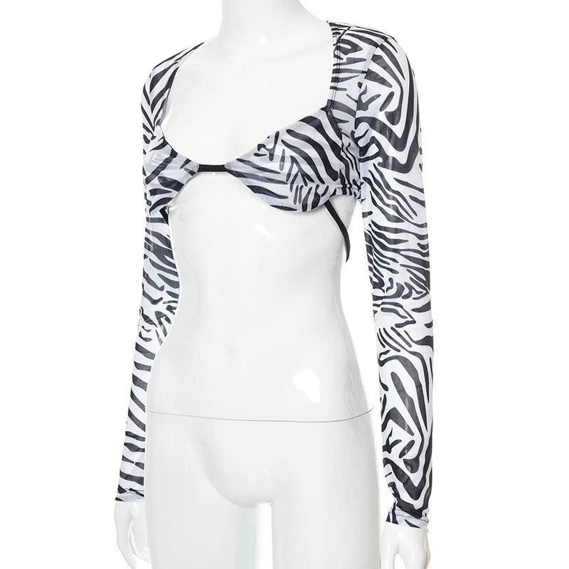 Женский укороченный топ с принтом зебры InstaHot, летний Повседневный тонкий уличная одежда с открытой спиной и длинным рукавом, 2021