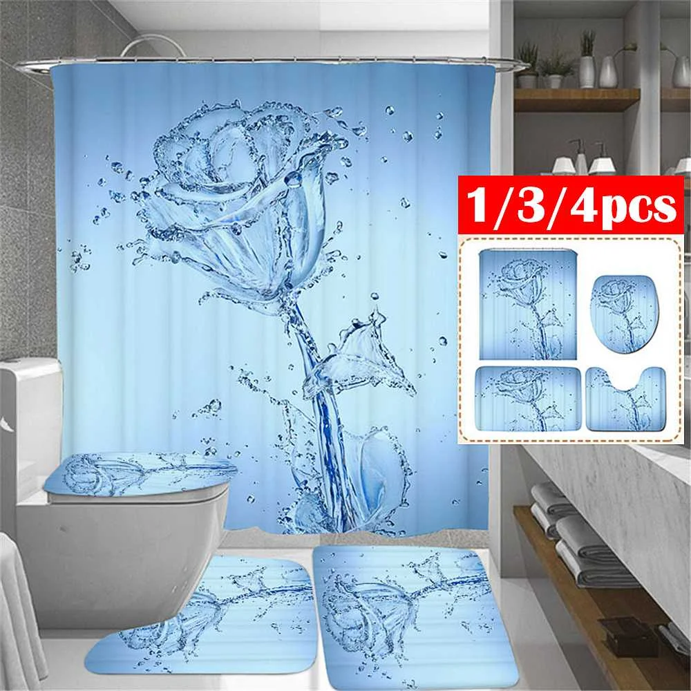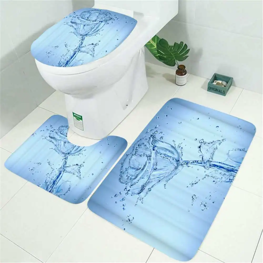 Синее синее сиденье для унитаза с цветочным узором, набор водонепроницаемых занавесок для душа, чехол для унитаза, нескользящий удобный коврик для ванной комнаты, украшение для ванной комнаты