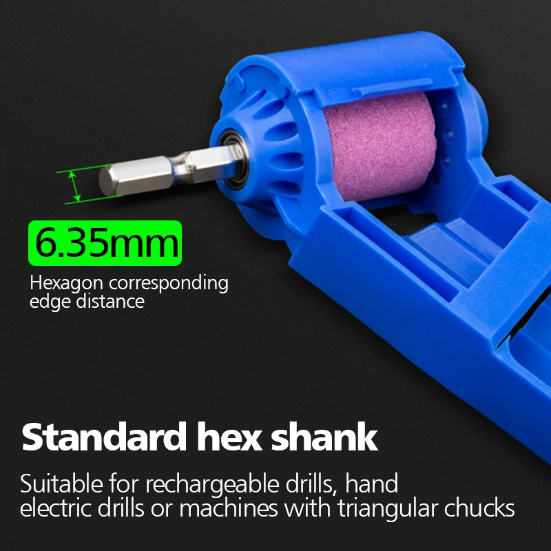 Изготовлен из высококачественного АБС-пластика и коричневого корунда шлифовального круга, он может очень хорошо Измельчить железное сверло, и он прочный и не легко повредить.