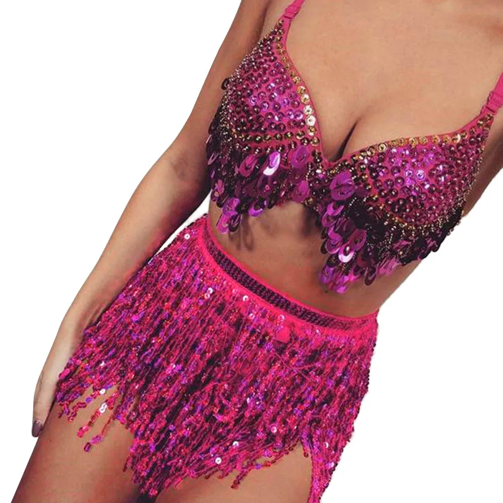 Сексуальный женский костюм для танца живота с бахромой и блестками,...
