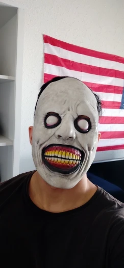 Хотя не носить, потому что имеет полную заднюю часть, только лента, чтобы держать голову, передняя часть хорошего качества и может дать хороший пугающий людей.