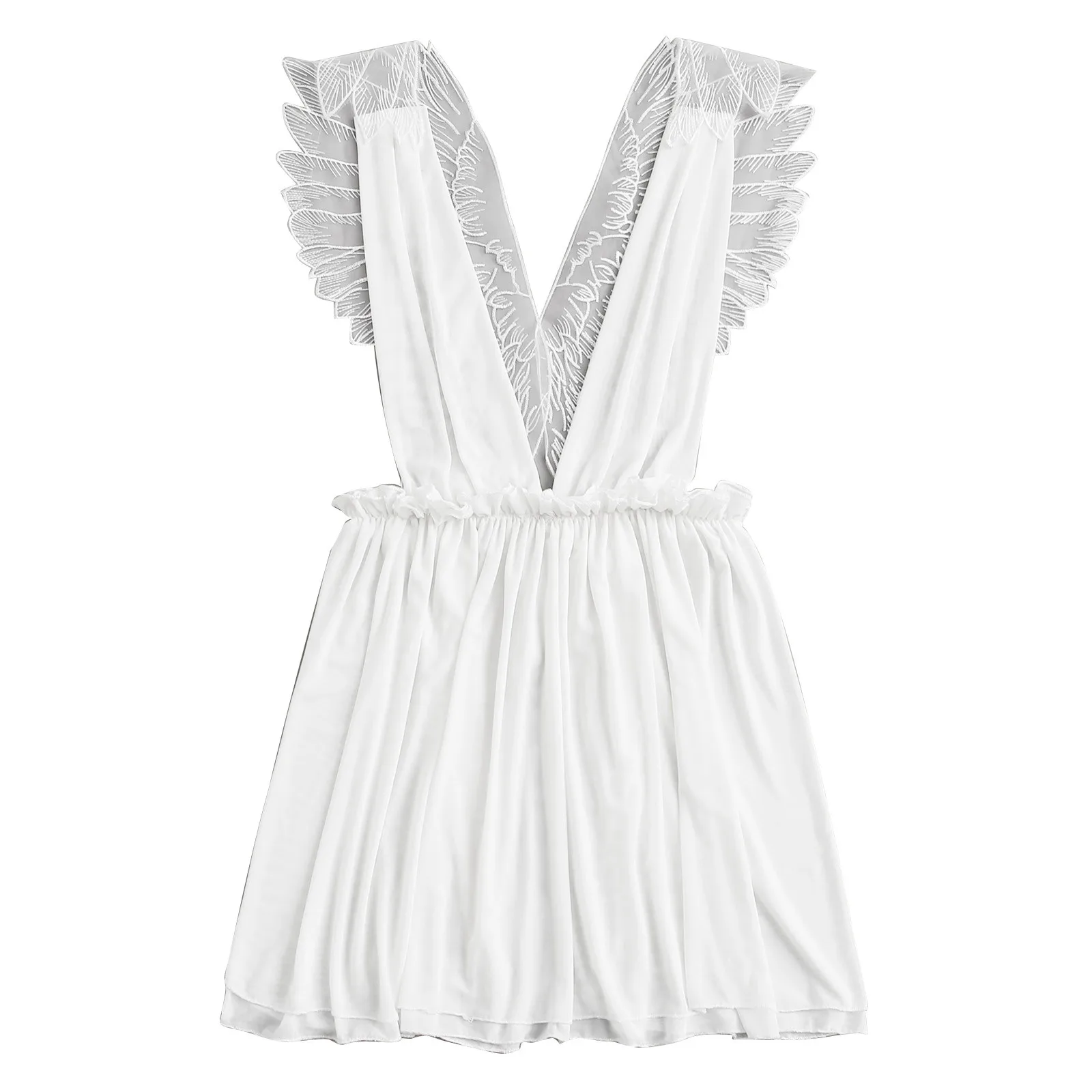 Женская ночная рубашка с открытой спиной Angel Wings, кружевная ночная сорочка с глубоким V-образным вырезом, прозрачная сетчатая Пижама размера XL
