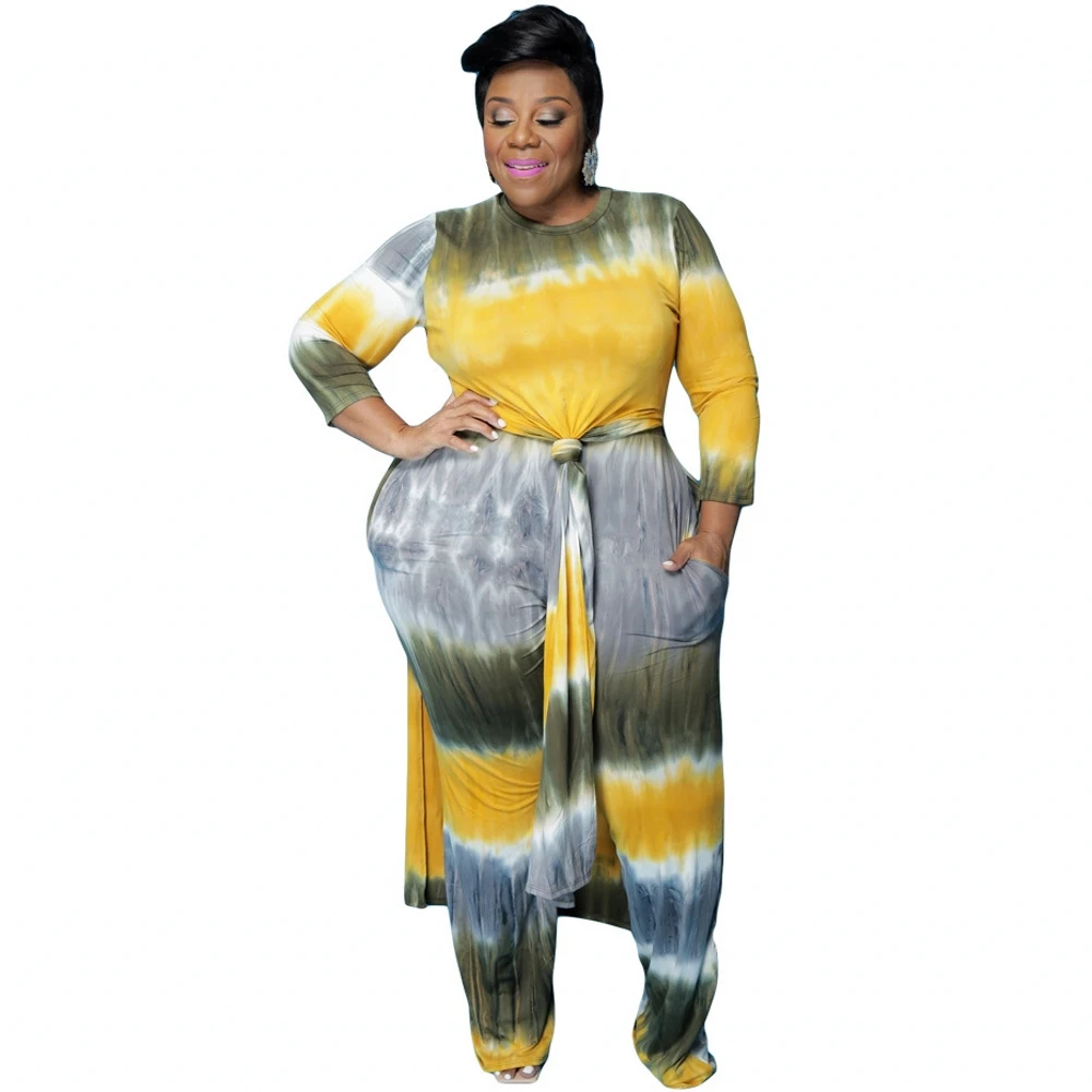 Женский комплект одежды из 2 предметов, Топ с длинным рукавом и штаны, большие размеры 4XL 3XL, Осень-зима