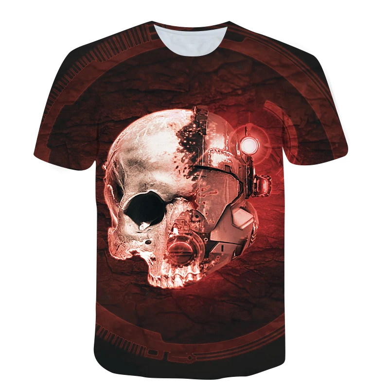 Мужская футболка с 3d-черепом, Новинка лета 2021, уличная мода, рубашка с круглым вырезом, Топ