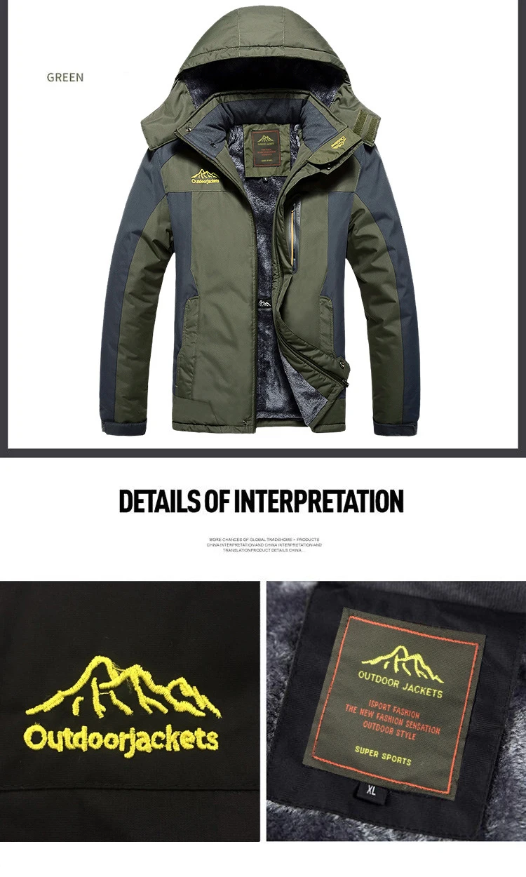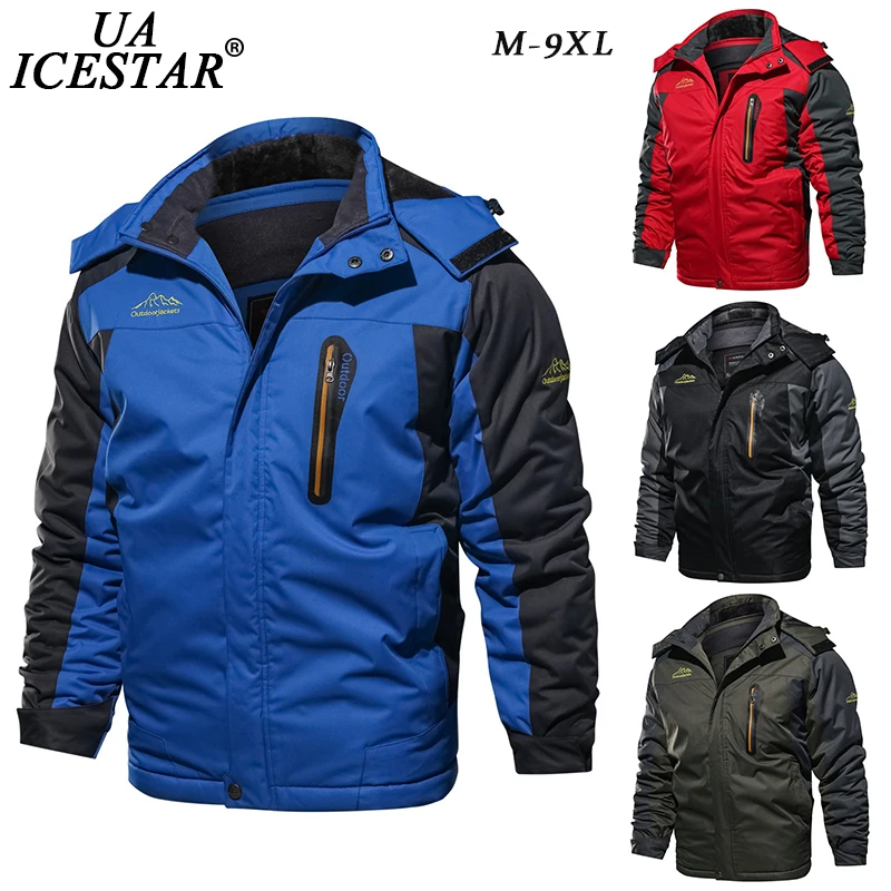 Парка мужская зимняя, непродуваемая, флисовая, с капюшоном, батальных размеров