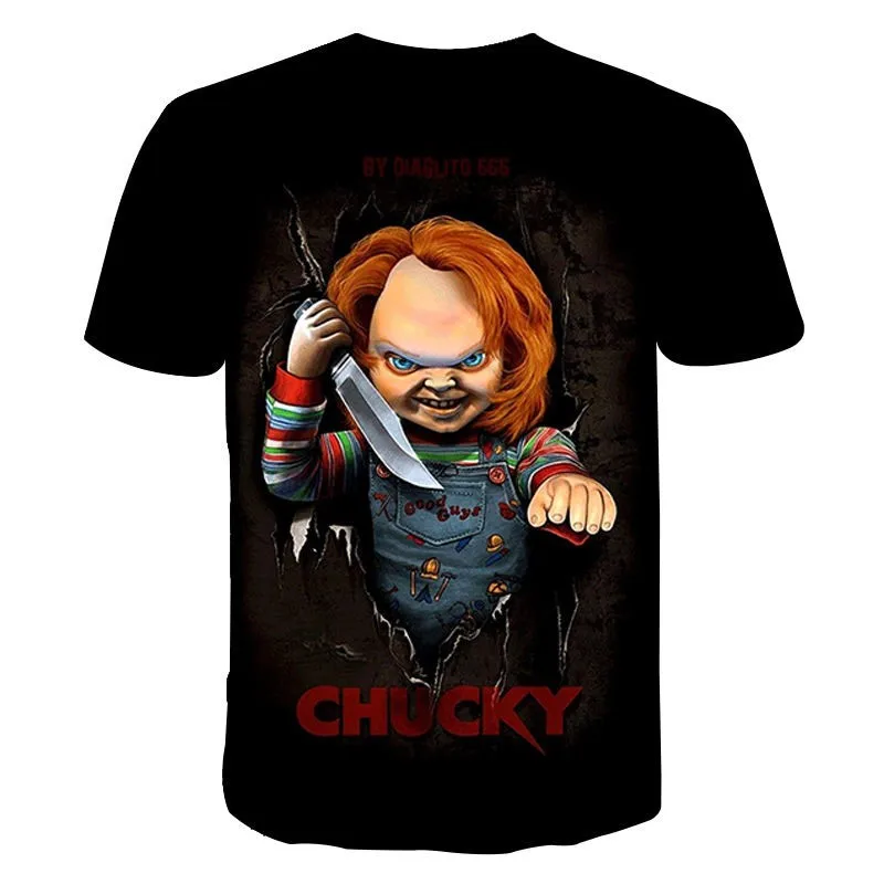 Кукла Чаки Хэллоуин ужас 3D футболки для мужчин креативные хлопковые футболки с круглым вырезом коротким рукавом Футболка женская одежда для родителей и детей