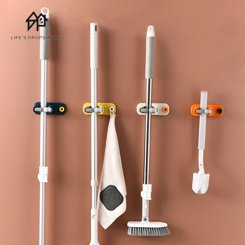 Многофункциональный настенный органайзер для швабры без перфорации, держатель, вешалка для щетки, метлы, стеллаж для хранения, кухонный зажим, крючок для швабры, подвесной