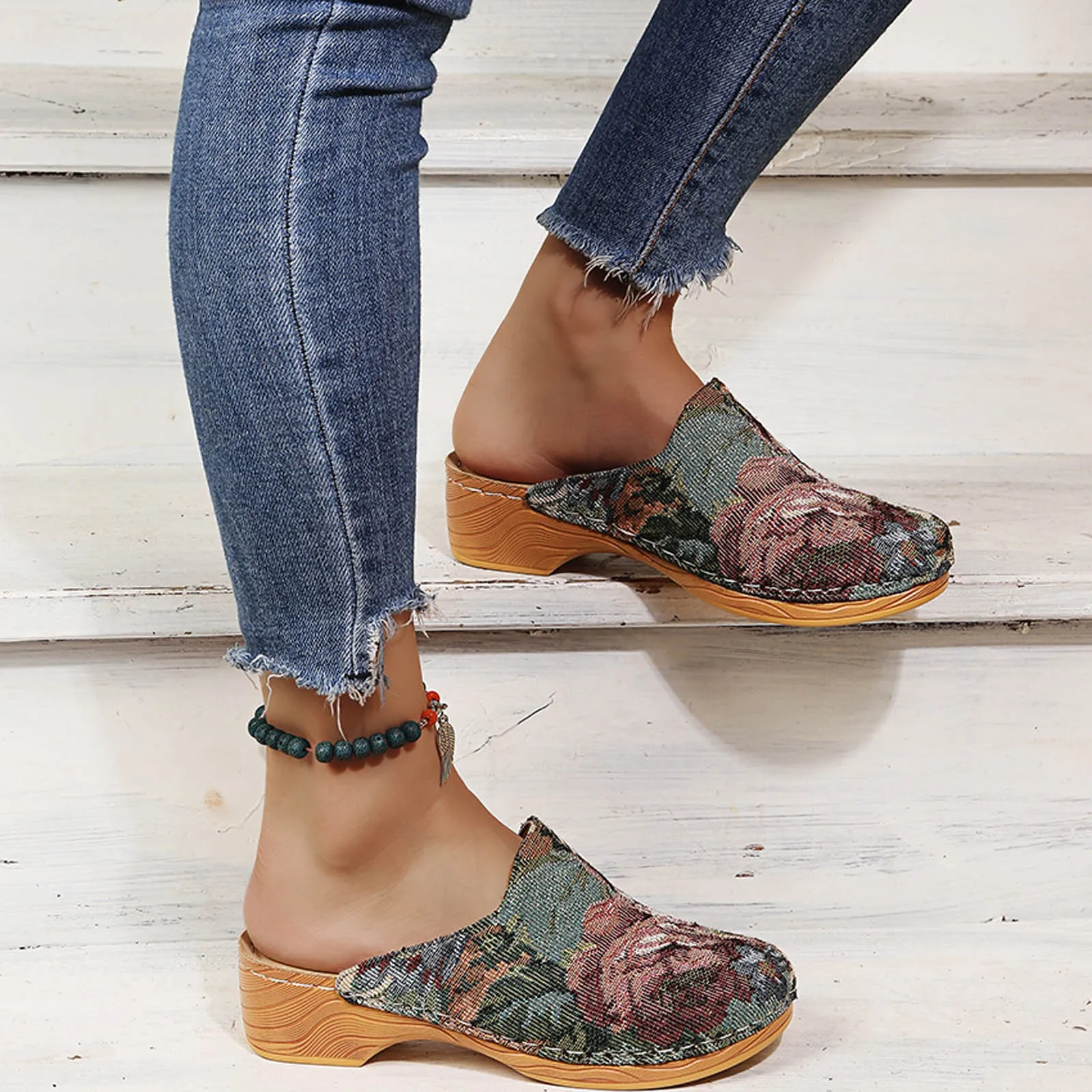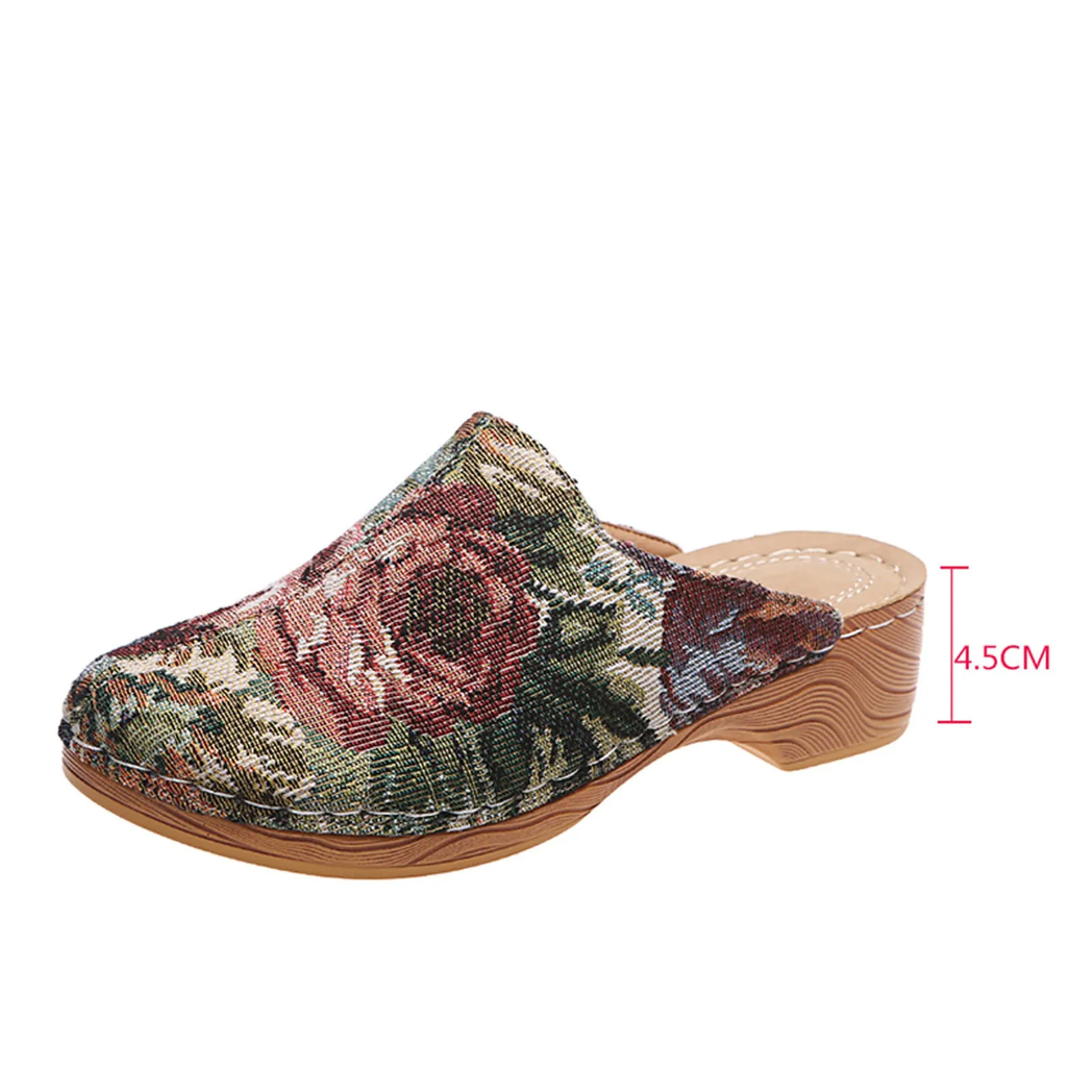 Женские летние туфли-слипоны старинные сандалии с круглым носком, дышащие тапочки, Женская Винтажная обувь на широком каблуке