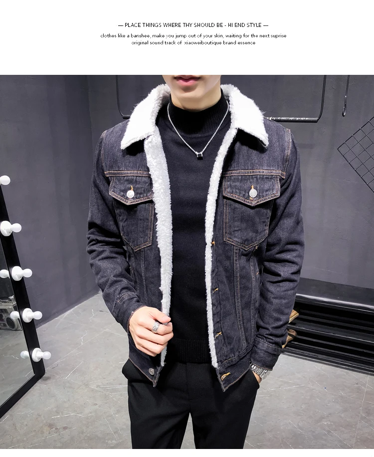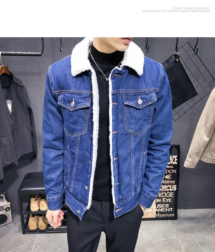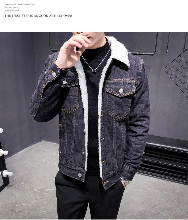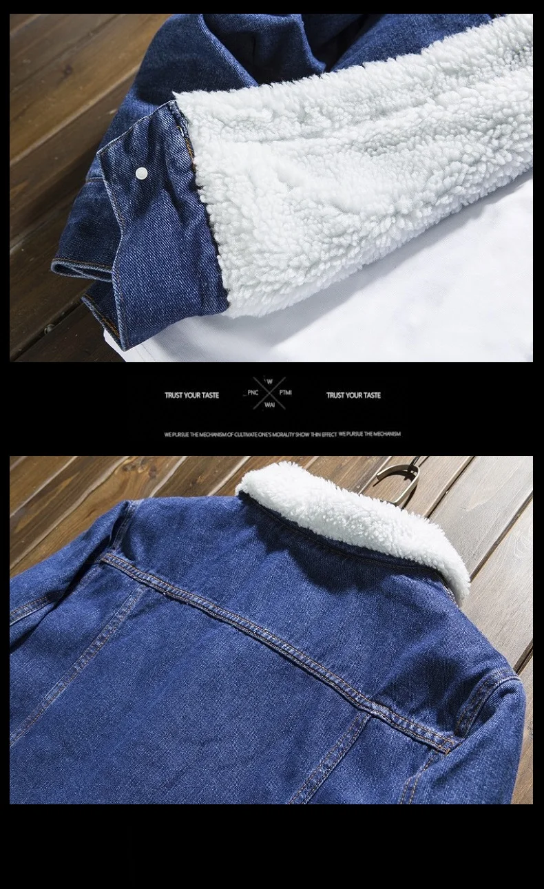 Мужская зимняя джинсовая куртка с бархатной подкладкой из овечьей ш...