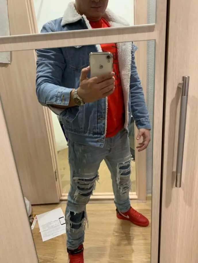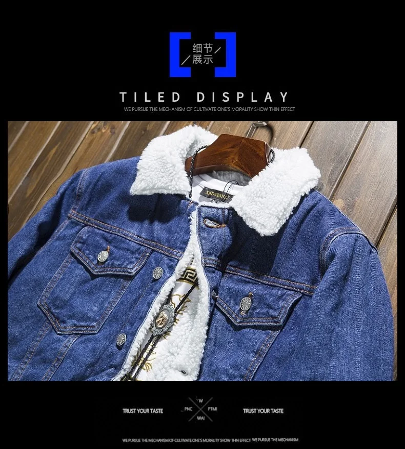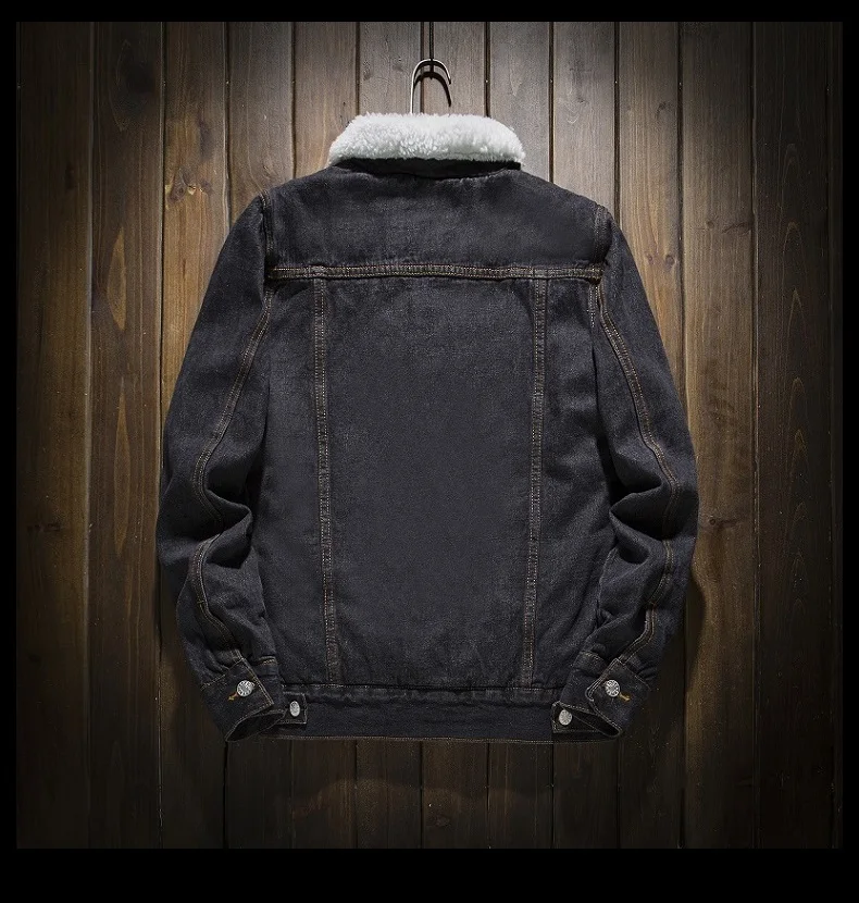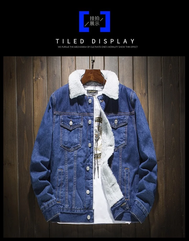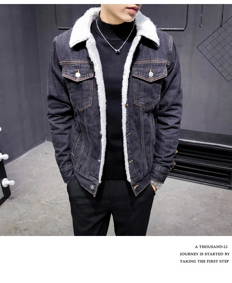 Мужская зимняя джинсовая куртка с бархатной подкладкой из овечьей ш...