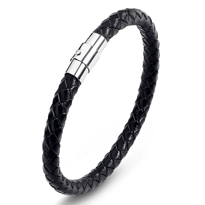 Классический плетеный кожаный браслет ручной работы для мужчин и женщин, очаровательные ювелирные изделия, браслеты из нержавеющей стали, модный браслет, подарки P692