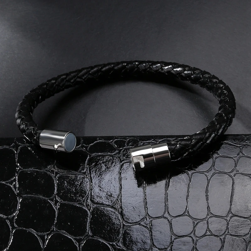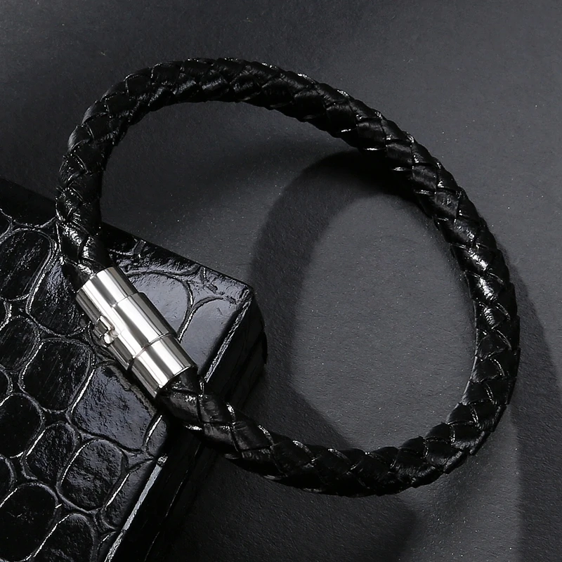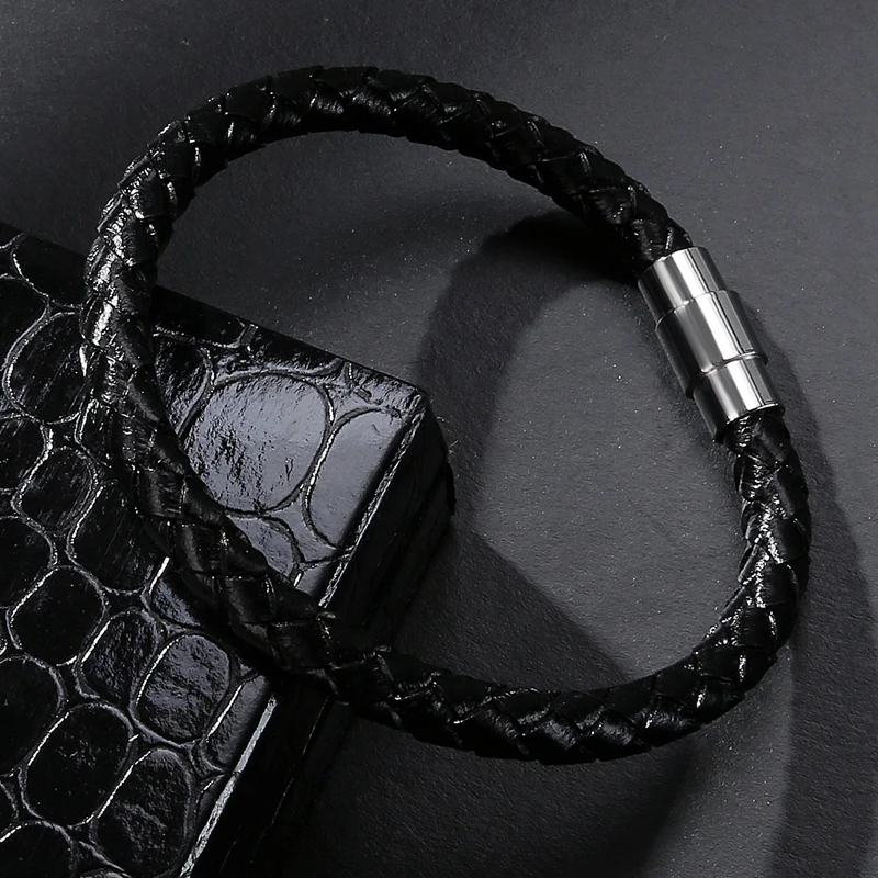 Браслет мужской кожаный плетеный, из нержавеющей стали, магнитный, ...