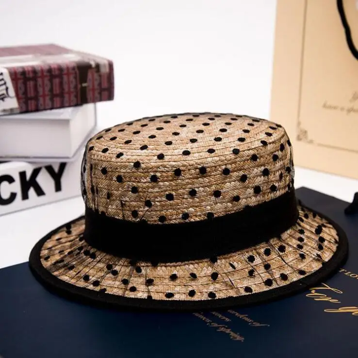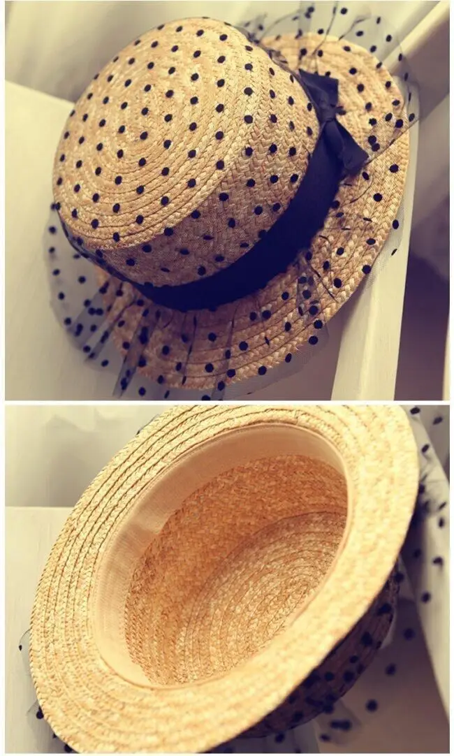 Шляпа женская Соломенная с бантом и большими полями, элегантная пляжная шапка от солнца, кружевной головной убор ручной работы, в стиле кэжуал, цвет черный, лето