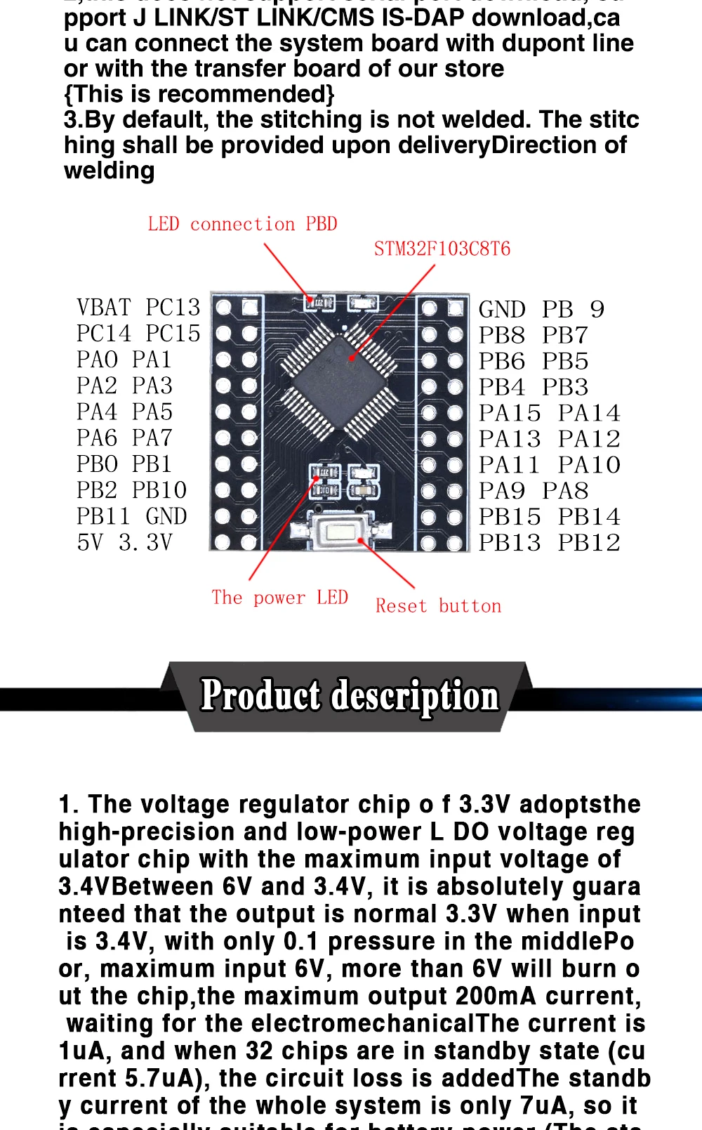 Минимальная системная плата MINI STM32F103C8T6основная платаплата разработки, плата управления полетомподходит для блока питания аккумулятора