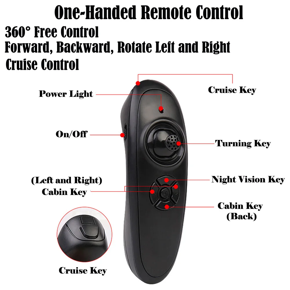 2. Используется пульт дистанционного управления одной рукой с фиксированной скоростью круиза, Пульт дистанционного управления может управлять освещением ночного видения на расстоянии, Три склада можно независимо контролировать для открытия, а корпус Имеет светильник катор питания! Аккумулятор 7,4 вольт и 5200 мАч, Который можно использовать непрерывно около 2 часов!