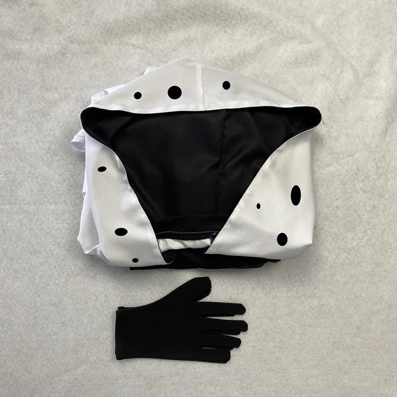 Круэлла де Виль Косплей Костюм женский черный белый в горошек плать...
