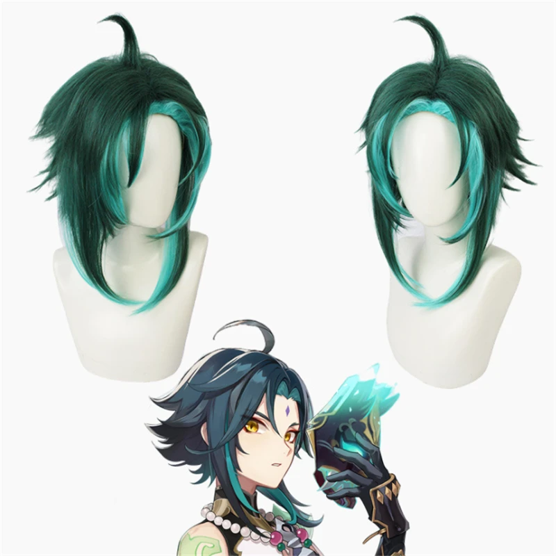 Парик из игры аниме Genshin Impact Project, парик Xiao Guardian Yasha из смешанных Зеленых Волос для косплея, ролевая игра, искусственные волосы на Хэллоуин, 40 см