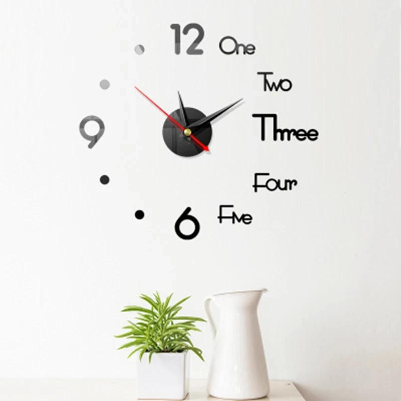 1 шт DIY настенные часы 3D зеркальная поверхность стикер домашний офис Декор часы (без розничной упаковки)