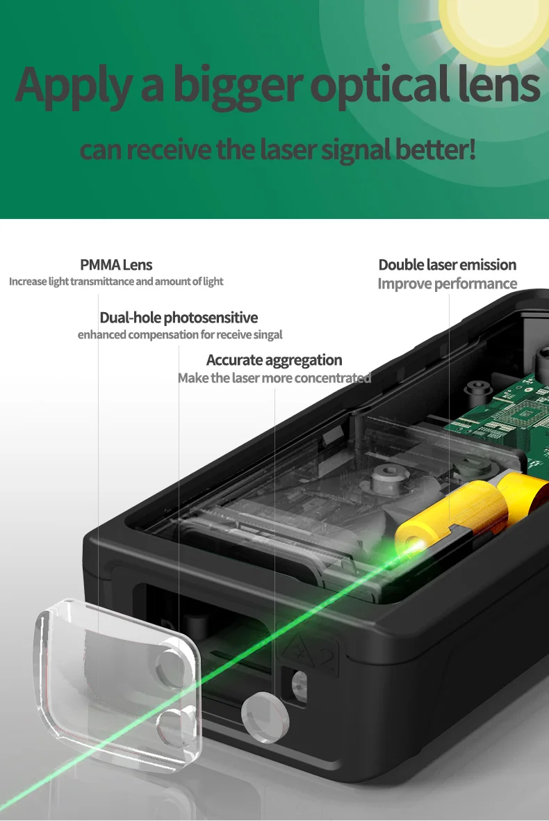 Зеленый лазерный луч лазерный дальномер, Большие оптические линзы, немецкая технология, точный.