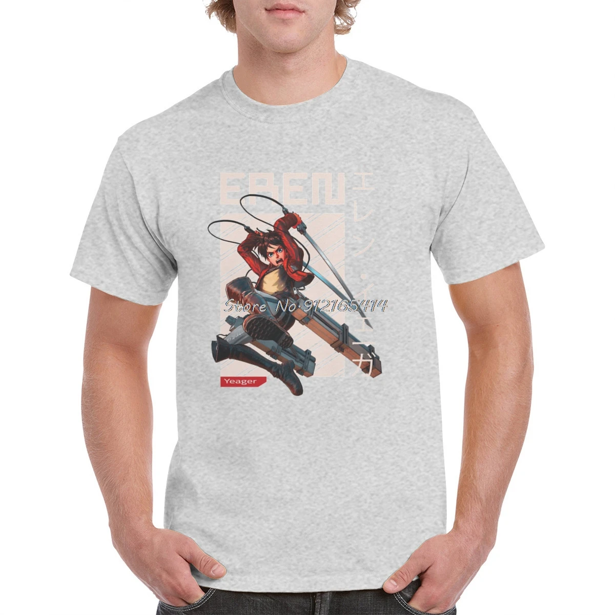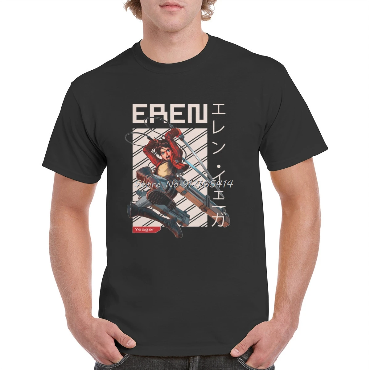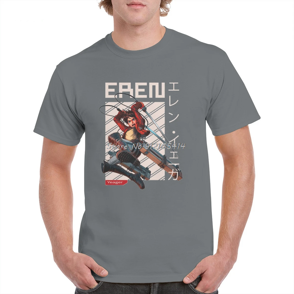 Футболка женскаямужская оверсайз с принтом Эрена йера из аниме атака на Титанов