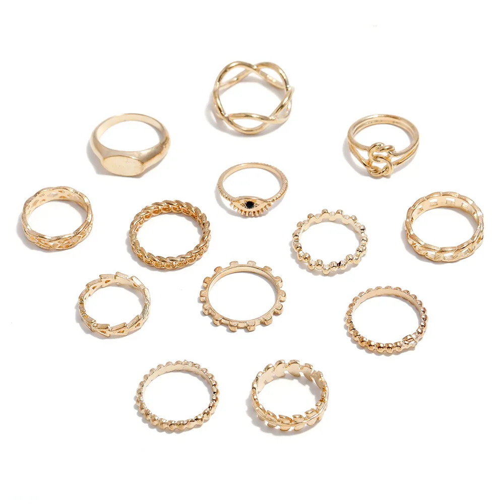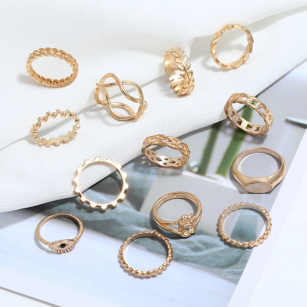2021 винтажный Модный набор колец для женщин и девушек, золотистые ...
