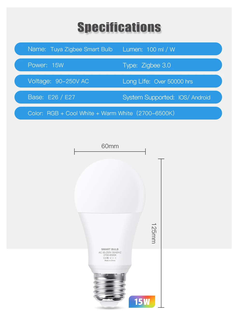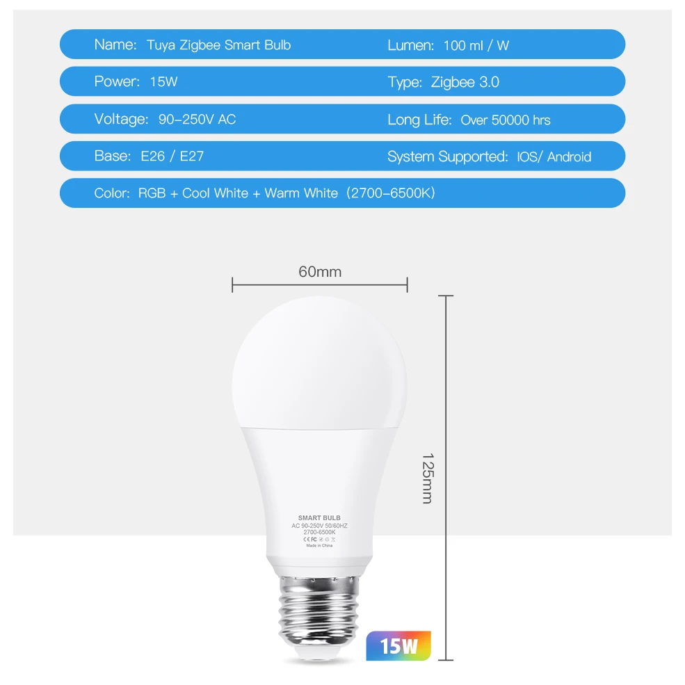 Умная Светодиодная лампа Zigbee 3,0 с цоколем Е27, 220 В