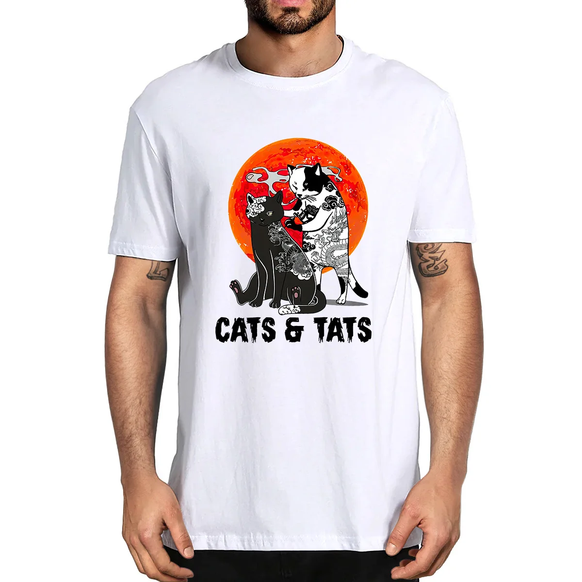 Хлопковая футболка унисекс с забавными кошками и тату-татуировками, подарок для художника, идея для лета, Мужская новинка, Женская Повседневная Уличная одежда